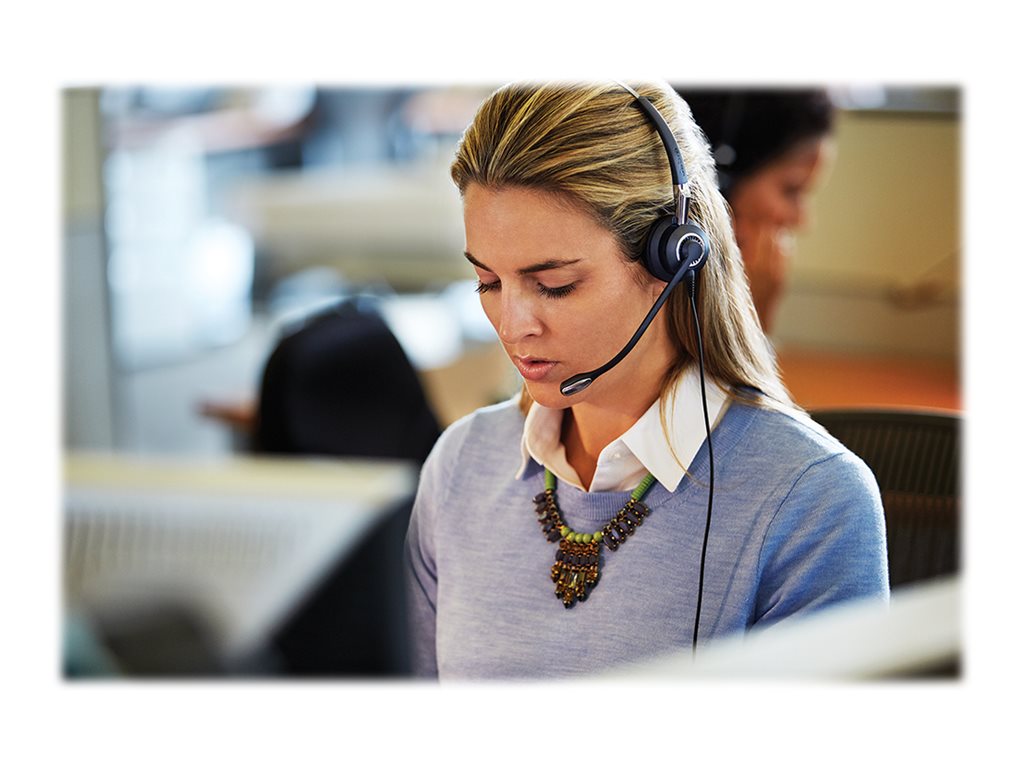 BIZ 2400 II gir enestående lyd i begge ender av samtalen, for å gi en ledende kundeopplevelse. Biz 2400 II har opptil 40 % lettere enn konkurrerende hodesett og med lavt hodebåndpress. Det lar medarbeideren fokusere på kundesamtalen med en enestående komfort. Jabra BIZ 2400 II QD Duo er et duo-hodesett med QD (Quick Disconnect) plugg som gir umiddelbar tilkobling til en bredt spekter systemer for bordtelefoner.