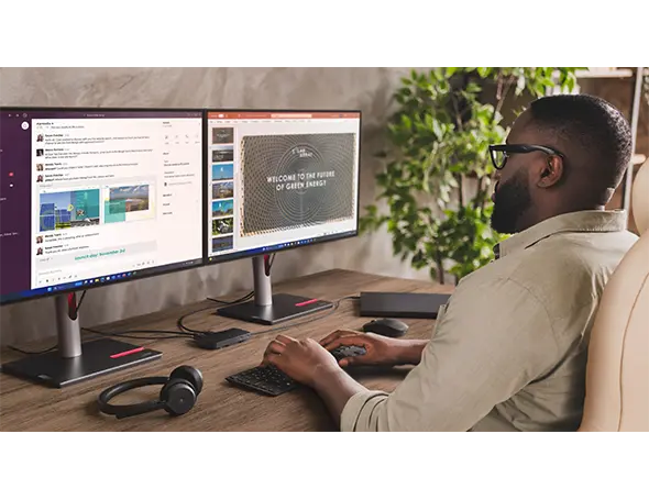 Lenovo USB-C Dual Display Travel Dock kombinerer stil, produktivitet og bærekraft for å gjenskape arbeidsområdet. Den er innkapslet i en moderne Eclipse Black-design, som gir den et særegent, minimalistisk uttrykk. Med 66 % resirkulert innhold (PCC) i kabinettet, er det et skritt mot å redusere den globale avhengigheten av ny plast.