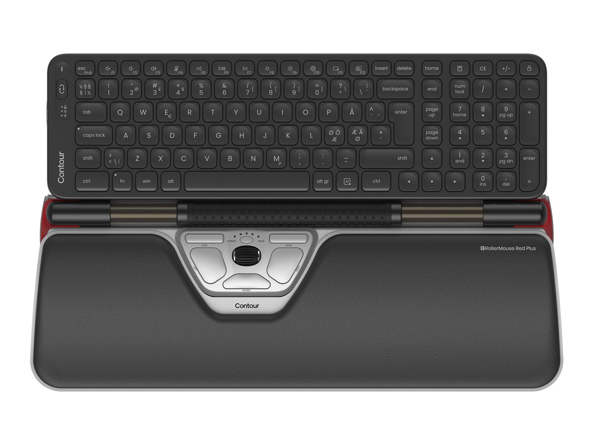 Contour RollerMouse – Tastatur- og mussett – midtstørrelse – trådløs – Bluetooth 5.1 – QWERTY – Pan Nordic