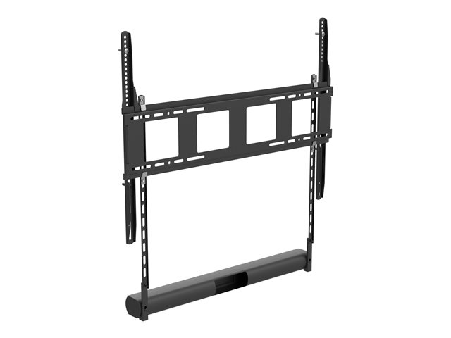 Et sett med braketter er inkludert som henger lydplanken under flatpanelet. Høyttaleren kommer også med gummiføtter hvis du trenger å plassere den på en hylle, og vegghengende ører.